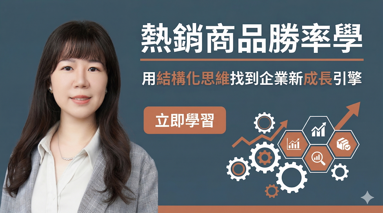 這門課帶你用「拆解→模仿→優勢→超越」4步驟框架,系統化完成市場金流觀察、商業模式解構、不公平競爭優勢盤點與JTBD需求洞察,在不盲目投入資源的前提下,大幅提高商品開發成功率。搭配直接可用的AI工具與實戰陪跑機制,幫你找到開發出熱賣商品的信心。